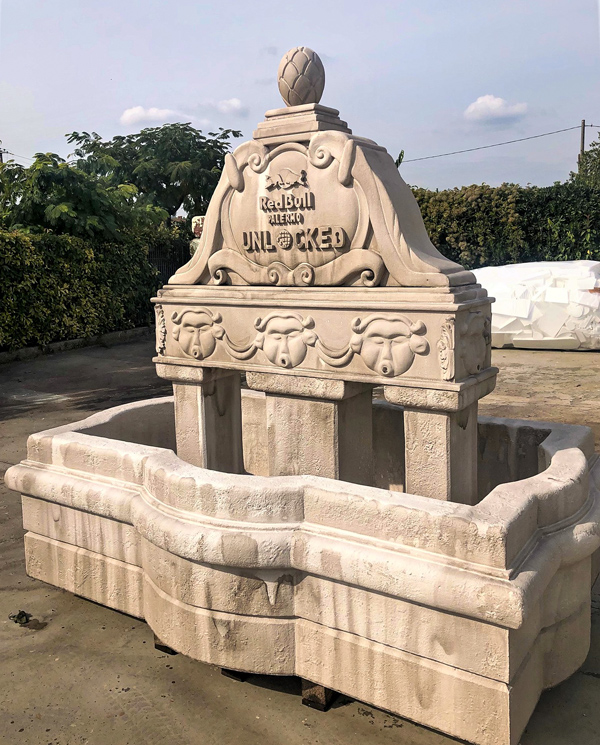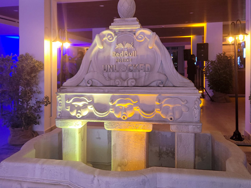 RED BULL | Creazione scenografica "Fontana del Garraffello" in Polistirene Bio* + Resina per l'evento di F1 Red Bull a Palermo