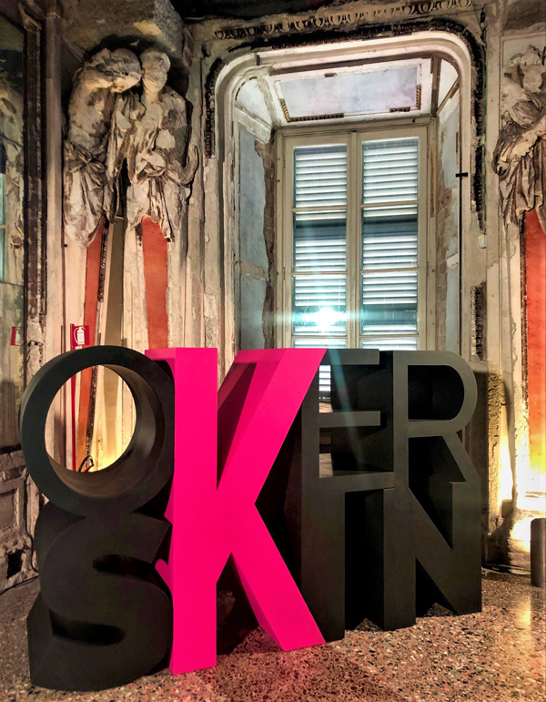 VERALAB® (1) | Creazione logo “OverSkin” in Polistirene EPS A.E. riciclabile per evento in Castello Reale a Milano Piazza Duomo